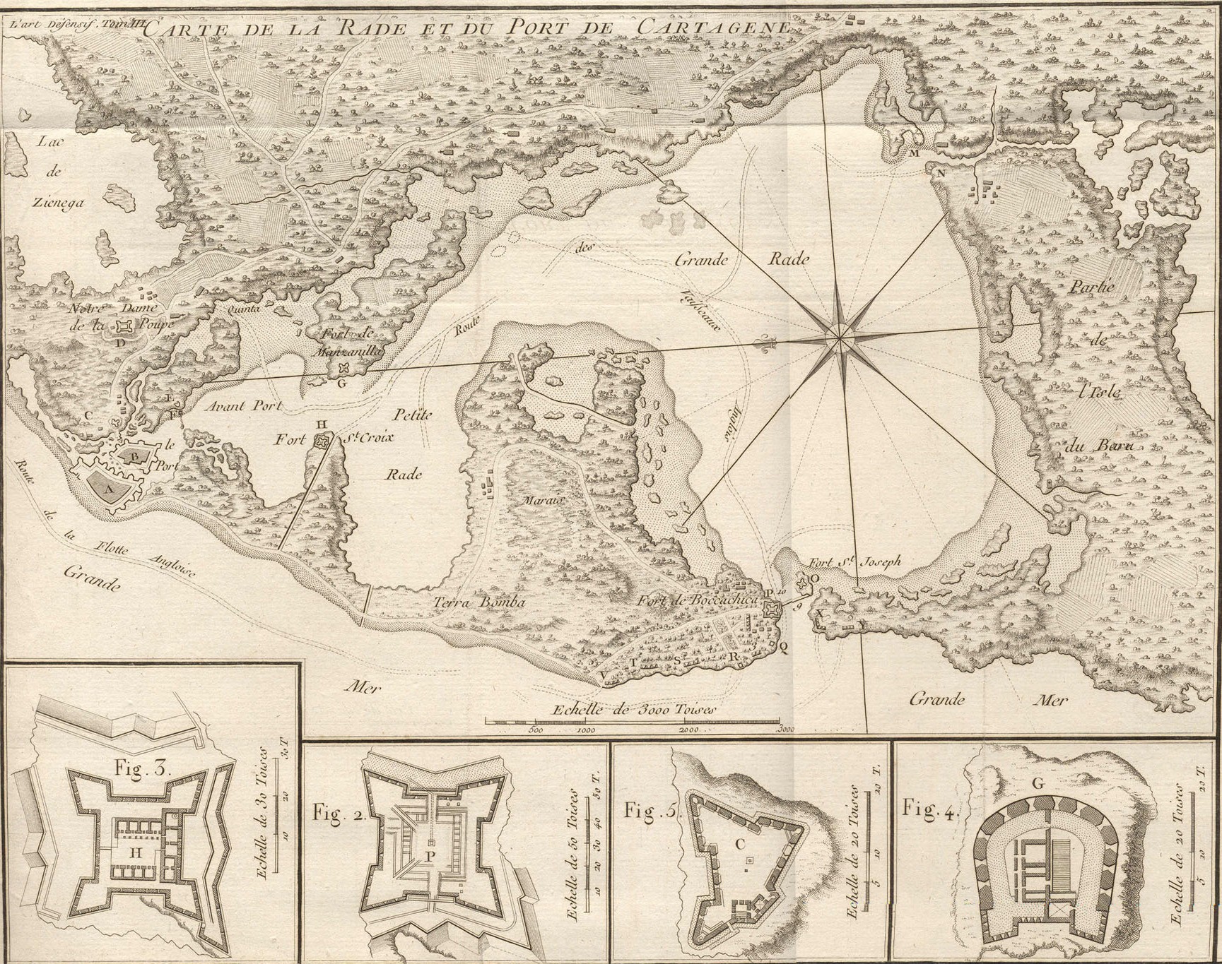 Aparte de los baluartes y lienzos de muralla de la plaza y del arrabal de Getsemaní, las principales fortificaciones que defendían la ciudad de Cartagena de Indias eran las siguientes:
