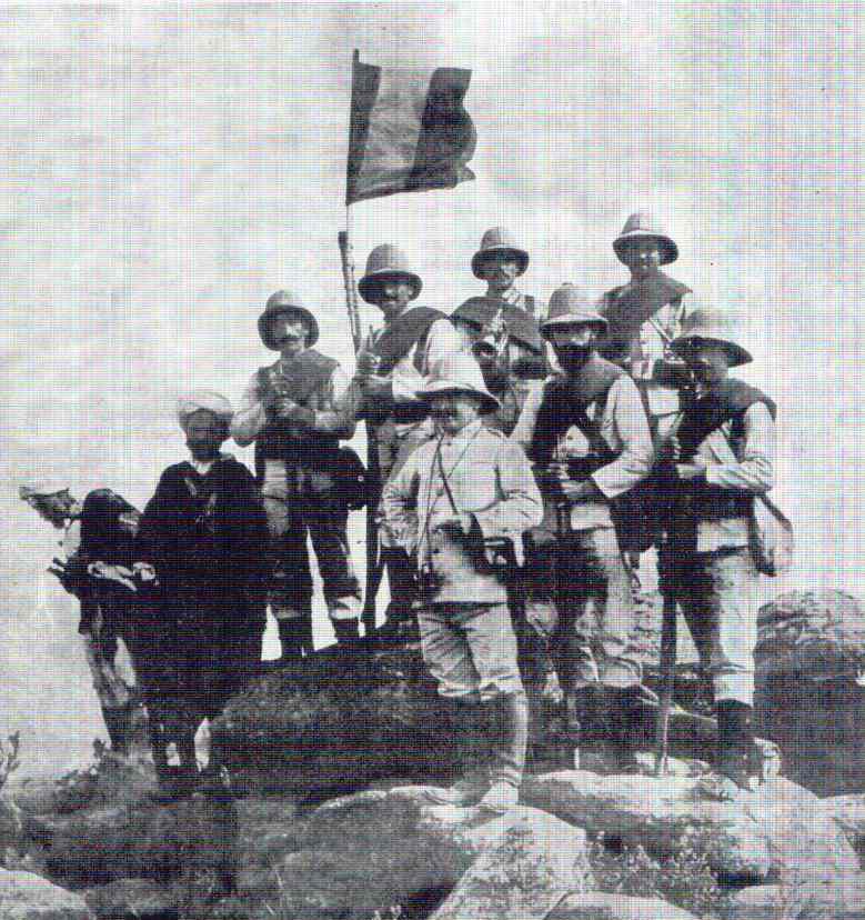 Izquierda: coronel don Francisco Larrea Liso, Jefe de Estado Mayor de la Comandancia, al mando de una compañía del regimiento África y otra del regimiento Melilla. Su misión era franquear la columna del centro por la izquierda.