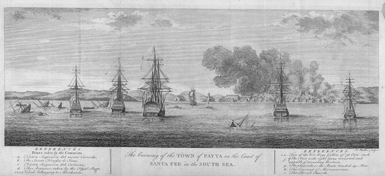 Al comenzar la Guerra del Asiento en 1739, los británicos diseñaron una estrategia cuyo objetivo era atacar los dominios españoles en el Caribe mediante dos esfuerzos en tenaza. El primero sería el ataque del almirante Vernon sobre Portobelo, Cartagena de Indias y La Habana. La segunda tenaza del plan británico la ejecutaría la escuadra ligera del Comodoro Anson sobre las costas del Pacífico.