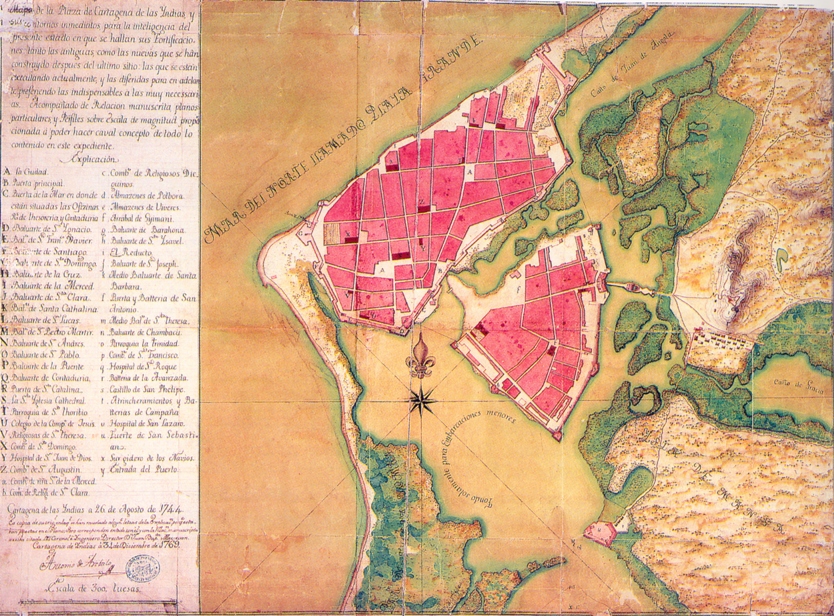 "Memorias que Podran serbir para la Historia de la Ciudad de Cartagena de Yndias. Plaza fuerte y ymportante de la América, tenida por Antemural Presidio del Nuebo Reyno de Granada en la Costa de Tierra Firme. Año 1798". Servicio Histórico Militar, Madrid. Signatura 6.941; 5-2-11-6.