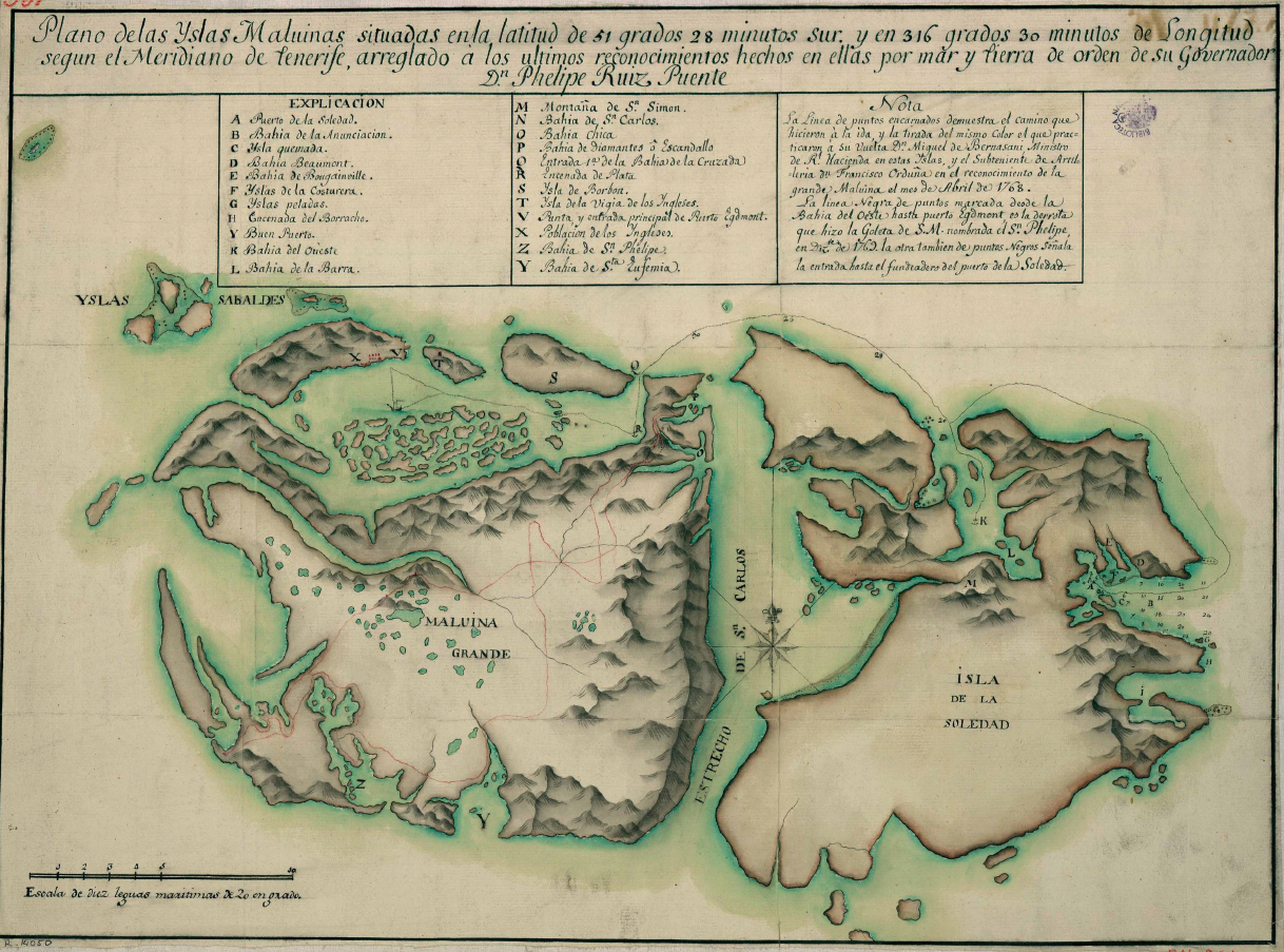 Las islas Malvinas están situadas frente a las costas de Sudamérica, a unas ochenta leguas al este del estrecho de Magallanes. Su descubridor fue el navegante trujillano Alonso de Camargo, quien en enero de 1540 descubrió unas islas a las que llamó islas Sansón y que los historiadores están de acuerdo en considerarlas como las islas Malvinas. Por otra parte, las islas estaban dentro de la jurisdicción de España según la bula papal Inter Cietera de 1493 y el Tratado de Tordesillas, firmado por España y Portugal en 1494.
