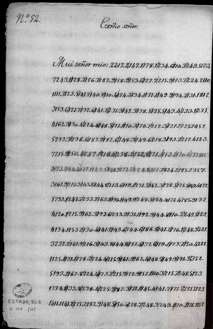 San Petersburgo a 23 de Abril de 1773. El Conde de Lacy. Descifrado nº 52.